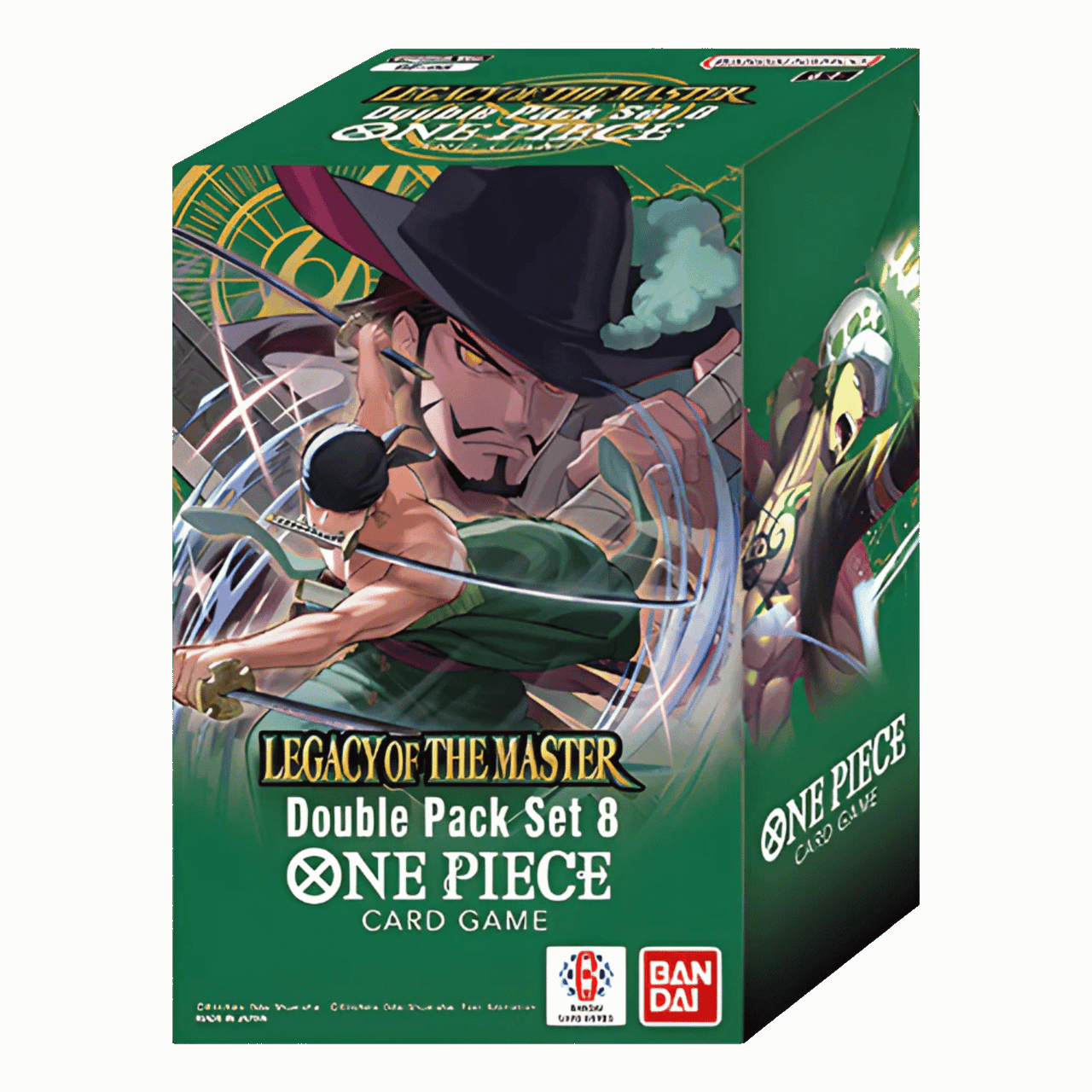 Das Double Pack Set Vol. 8 setzt die günstige Produktreihe fort. Es enthält zwei Boosterpacks der Erweiterung „Legacy of the Master“ (OP-12) und eine DON!!-Promokarte mit einer von zwei neuen Designs. Auch hier dient die stabile Verpackung später als praktisches Kartenetui. Als Teil der erschwinglichen Double Pack-Serie ist dieses Set ideal für neue Spieler, um kostengünstig Karten zu öffnen, und für Sammler, die die exklusiven Promo-DON!!-Karten sammeln möchten.
